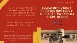 Acadêmicos do curso de História da Universidade Estadual do Piauí (UESPI), Campus Possidônio Queiroz, em Oeiras, em parceria com a Secretaria Municipal de Educação (SEMED), promoveram uma oficina para professores da rede municipal durante o Encontro Artístico de Identidade e Cultura de Oeiras, realizado na última sexta-feira (28). Na atividade, foram trabalhados temas como escravidão, resistência e literatura.