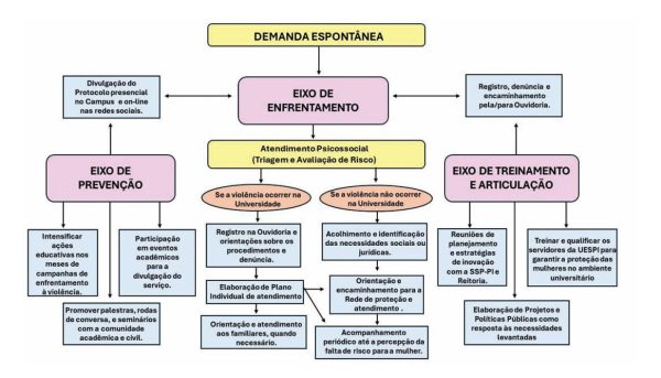 O Núcleo também atuará de forma articulada com a Ouvidoria da UESPI. Nesse sentido, as demandas associadas á violência contra a mulher serão direcionadas ao Núcleo, para realizar o acompanhamento psicossocial, caso a mulher tenha interesse. Além disso, a partir do atendimento por demanda espontânea pela equipe do Núcleo será registrado e encaminhado o relato aos canais da Ouvidoria.