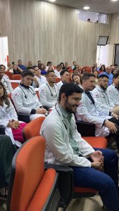 Andressa Lima, presidente da IFMSA Brazil UESPI, falou sobre a federação e os processos pelos quais o intercambista passou.  “A IFMSA é uma federação internacional, e como existe a IFMSA no país dele, ele conseguiu estabelecer essa comunicação conosco para estar aqui hoje”, explicou Andressa.